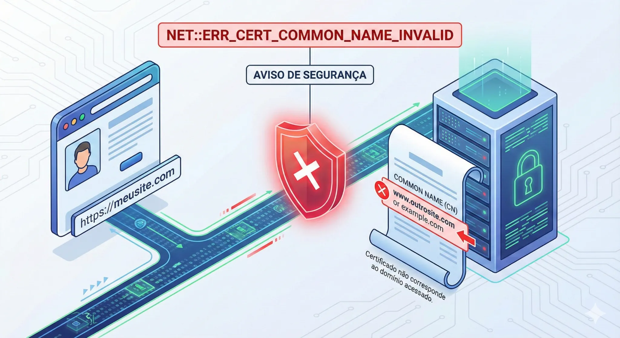 Entienda por qué el navegador bloquea el acceso debido a un fallo en el certificado SSL y vea cómo corregir el error net::err_cert_common_name_invalid.